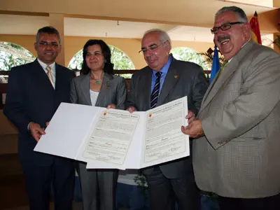 Álvarez Areces y María Jesús Álvarez reciben el título de ‘Visitantes Ilustres’, de mano del alcalde de Santiago de los Caballeros, José Enrique Sued.