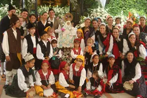 Los integrantes del Grupo Folklórico del CAC, venerando a la Patrona de Asturias.
