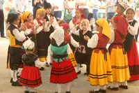 Los grandes del Grupo Folklórico bailan ‘El Pericote’, danza típica de Llanes.