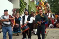 El ‘tamborileru’ Enrique González y el ‘gaiteru’ Florencio Villar animaron las procesiones y los bailes.