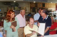 Enrique Fernández Valdés firma en el libro de honor del Centro Asturiano de Málaga.