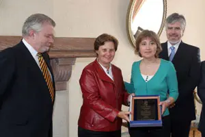 Ramos recibe una placa de la secretaria del Estadio Español.