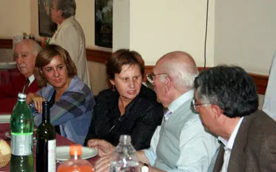 María José Ramos, Begoña Serrano y Manuel Fernández compartieron un almuerzo con los directivos del Club Tinetense.