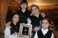 Ramos posa con el grupo de socios nacidos en Asturias, con el Reconocimiento y la placa con la cruz de la victoria.