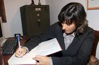 Ramos firma en el libro de visitas del Centro Asturiano de de San Fernando.