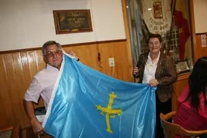 El presidente del Centro Cangas del Narcea recibe, en nombre de la institución, la bandera que le obsequia la viceconsejera.
