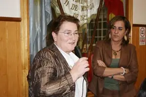 Teresa Ordiz, durante su encuentro con los cangueses de Buenos Aires. A su Lado, Begonia Serrano.