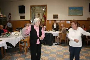 Manuela Martínez y María Fernández bailan para la viceconsejera la jota canguesa.