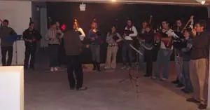 Las panderetas tampoco faltaron en el Centro Asturiano de Madrid.