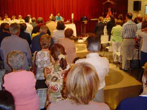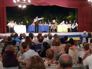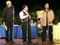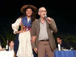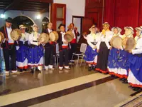 Gimeno, Santana y Esteves, y la Agrupación Folklórica del HCV, durante el ‘Tenderete’ realizado en el Hogar Canario Venezolano.