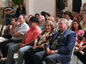Waleska Serrano, Javier Lorenzo y José Alberto Marín, directora de Festejos, de Cultura y vicepresidente de la HCV, respectivamente; Soledad de Suárez y José Suárez Meneses, presidente de la HCV.