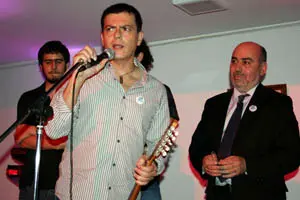 El timplista Benito Cabrera agradece el charango que le obsequiaron.