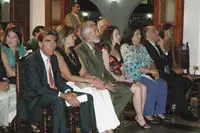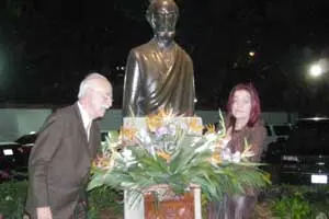 Ofrenda floral del profesor Francisco Ramón González y la presidenta del HCV ante el busto de Power Viña.ompositor