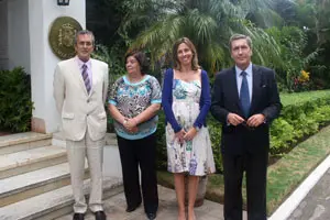 El embajador -a la dcha.- recibió a la delegación canaria.