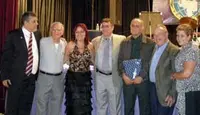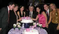 Los directivos de Fedecanarias cantan el cumpleaños feliz, en torno al pastel del XIX Aniversario.