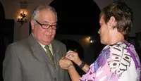 Delia Sánchez, directora de Fedecanarias, coloca a José Manuel Armas Pérez, secretario general de la ACBC Isla de La Gomera, como miembro fundador y directivo de Fedecanarias (2003).