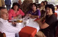 Miguel Ángel Machín –2º por la izqda.–, Guillermina Hernández, José Luis Perestelo y Juan Ramón Rodríguez, durante una comida previa al Festival.