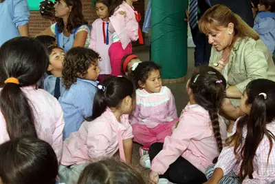 Isabel Carrasco, con los alumnos del centro docente.