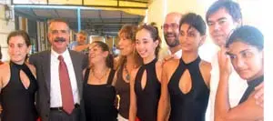 Bermúdez posa con el grupo de baile que actuó en las jornadas.