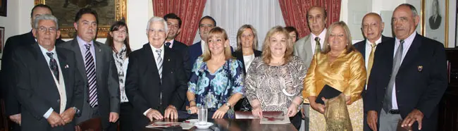 Tras la firma de los distintos protocolos, los presidentes de centros posaron junto a la delegación leonesa.