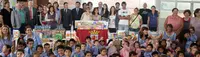 Isabel Carrasco, con los niños del colegio \'Virgen del Camino\'.