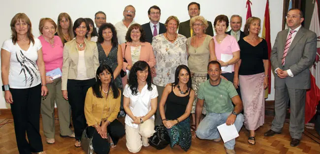 Alfonso Fernández Mañueco y Félix Colsa posan junto a los beneficiarios del programa ‘Siente Castilla y León’.