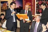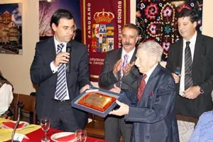 Martínez Maíllo entrega una placa recordatoria a Alfredo Miranda, ex presidente de la institución.