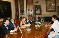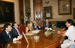 Carrasco con el presidente del Centro Castilla, Segundo García, y por los diputados leoneses Jaime González, Marcos Martínez y Lázaro García.