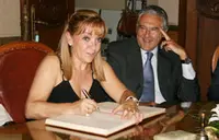 La presidenta de la Diputación firma el libro de visitantes del Club Español de Rosario.