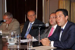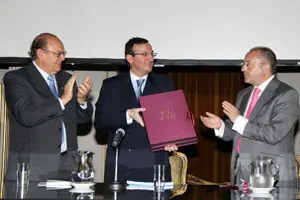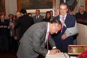 El director general firma en el libro de la Federación de Sociedades Españolas.