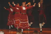 El cuerpo de baile del Centro Burgalés, durante su actuación en el homenaje.
