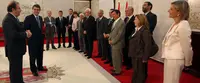 El presidente Herrera, junto al consejero de Interior, Alfonso Fernández Mañueco, saluda a los miembros del Consejo de la Emigración de Castilla y León.