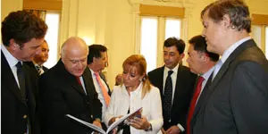 Carrasco obsequia un libro al Intendente de Rosario, que da cuenta de las bellezas geográficas y culturales de la provincia.