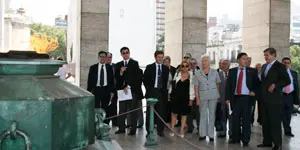 La comitiva de la Diputación de León, durante la visita al monumento de la Bandera.