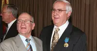 Manuel Barros y Julio Ríos, presidente del Centro Gallego de Montevideo.