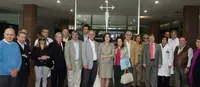 La comitiva española, encabezada por Anna Terrón, posa con la directiva y miembros de Casa de Galicia.