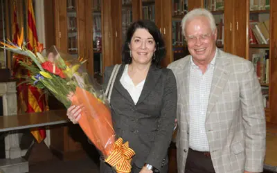 Anna Terrón con el presidente del Orfeò, Xavier Torroja.