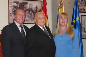 Jorge Noval Álvarez, cónsul general adjunto; Cándido Rodríguez Losada, director de Cavespa y sec. gral PSOE; Lucía Chicote, consejera de Cultura Emb. España; y José Luis Cerezo Baños, presidente del Centro Riojano Venezolano.