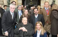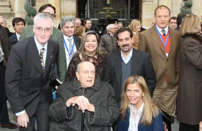 Manuel Fraga, acompañado por Victoria Cristóbal y militantes del PP.