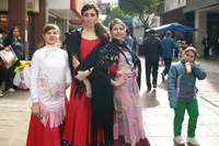 Las jóvenes vestidas con trajes típicos despertaron el interés de los más pequeños.
