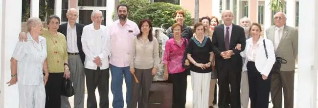 Pilar Pin, Manuel Luis Rodríguez y Eduardo Pahíno posan con los \'niños de la guerra\'.