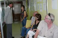 El cónsul general conversa con algunos emigrantes.