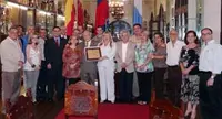 Los 17 consejeros, junto al cónsul general y al consejero de Trabajo, posan con José María Ariño Espada, y su hija, María Elena Ariño Carasusán.