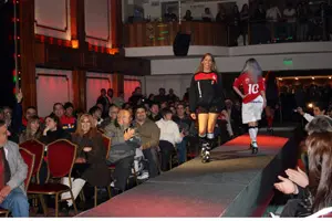 Las modelos presentan la nueva vestimenta del Deportivo Español.