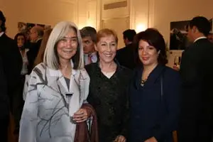 La escritora María Kodama, la esposa del embajador, Enriqueta Cozar, y Pilar Pin.
