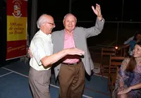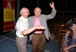 Pin, en la sede del Gremio Español, con su presidente, Manuel Diz; el alcalde de Beariz, Manuel Prado; el cónsul honorario, Claudio Álvarez; el consejero laboral de la Embajada, Jesús Salas; y el jefe de la oficina laboral de Minas Gerais.
