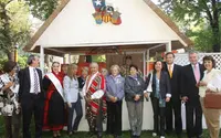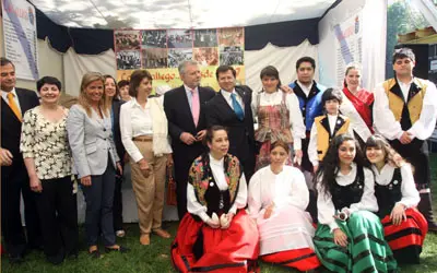 Las autoridades visitando el stand del Lar Gallego de Chile.