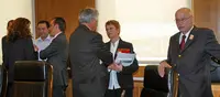 Consuelo Rumí y Agustín Torres posan junto a los miembros de la Comisión de Jóvenes y Mujeres.