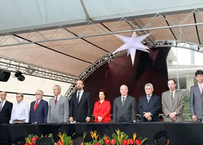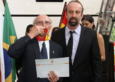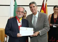 Jesús Salas, consejero de Trabajo en Brasilia, recibiendo su medalla.
