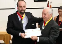Antonio Casas, jefe de la sección laboral de Río, recibe la medalla del 'Gremio Español'.